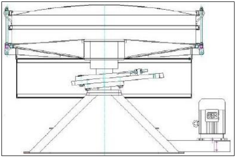 搖擺篩是模仿人工篩分方式演變過來的一種篩機(jī),充分體現(xiàn)了篩分過程中篩(圓周運(yùn)動(dòng))和簸(向上拋物運(yùn)動(dòng))運(yùn)動(dòng)結(jié)合。通過調(diào)節(jié)徑向角和切向角控制的篩和簸的幅度大小使得篩分效果達(dá)到最佳。